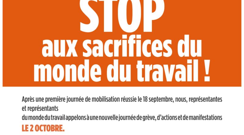 CFDT – On se mobilise jeudi 2 octobre pour dire stop aux sacrifices du monde du travail